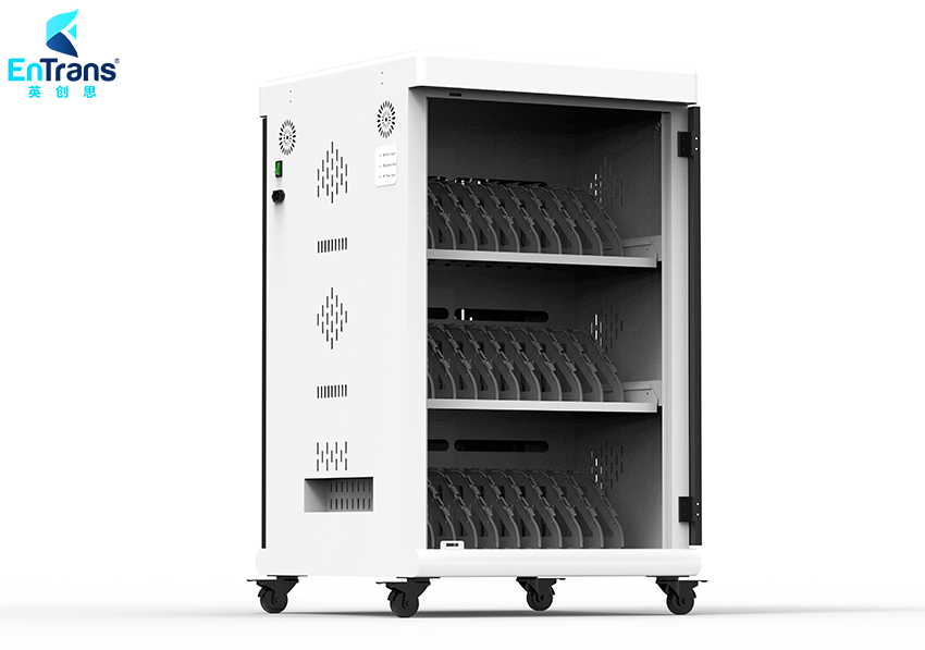 充电柜内部提供大量充电空间,设备与设备之间也预留了极大空间,在提升其散热效率的同时也让用户既可以选择充平板电脑也能充笔记本电脑。插排的设计使充电柜可以适应大量不同类型的设备。并且充电柜配备多台散热风扇,以及ABS充电隔板,让机柜在炎热的酷暑也能充分发挥全部效能。